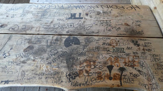 (eingeschnittene Baumstämme) teilweise schon sehr mitgenommen sind.